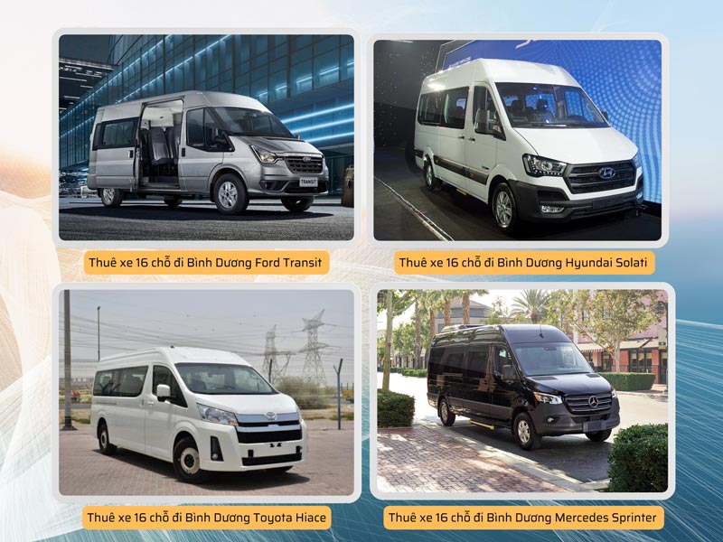 Xe 16 chỗ là lựa chọn lý tưởng cho các đoàn khách đông người hoặc doanh nghiệp tổ chức chuyến công tác, tham quan tại Phan Thiết - Mũi Né. Với mức giá cạnh tranh, dịch vụ thuê xe 16 chỗ có tài xế đi Bình Dương mang đến những dòng xe đời mới, hiện đại như Ford Transit và Hyundai Solati… được trang bị đầy đủ tiện nghi để đảm bảo sự thoải mái và an toàn tối ưu cho hành trình của bạn.